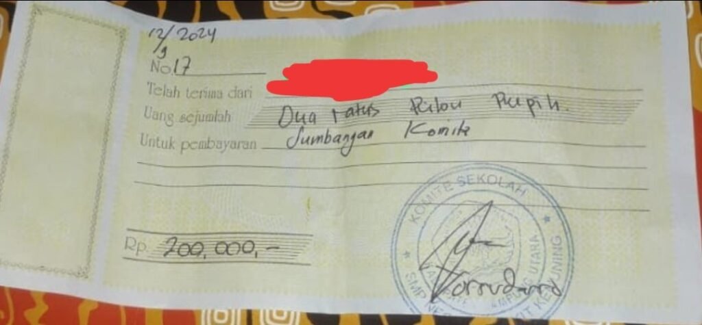 Mediastara, Kota bumi– Dunia pendidikan kembali lagi tercoreng oleh oknum-oknum yang hanya mementingkan diri dan golongan nya sendiri,peristiwa ini terjadi di SMPN 1 Bukit kemuning kota bumi Lampung Utara,dengan dalil untuk pembuatan aula sekolah.yang dilakukan oleh komite dan kepala sekolah SMPN 1 Bukit Kemuning.